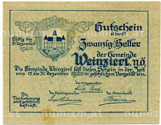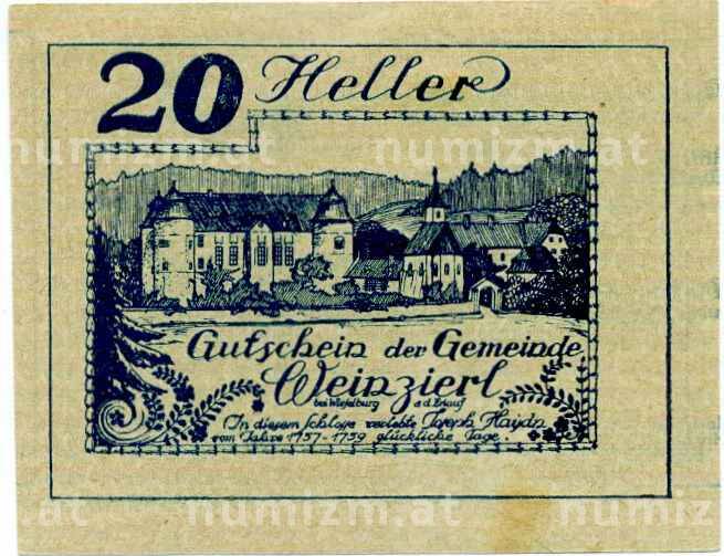 Купить 20 геллеров 1920 года Австрия — Вайнцирль (Нотгельд) по привлекательной цене можно в нашем интернет-магазине — Вам достаточно оформить заказ на сайте. Все монеты, представленные в каталоге, находятся в наличии на нашем складе.