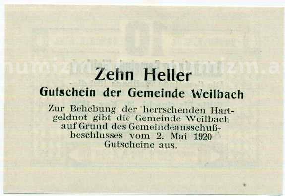 20.01.2025Интернет магазин «Нумизмат» предлагает приобрести 10 геллеров 1920 года Австрия — Вайльбах (Нотгельд).