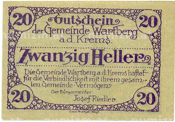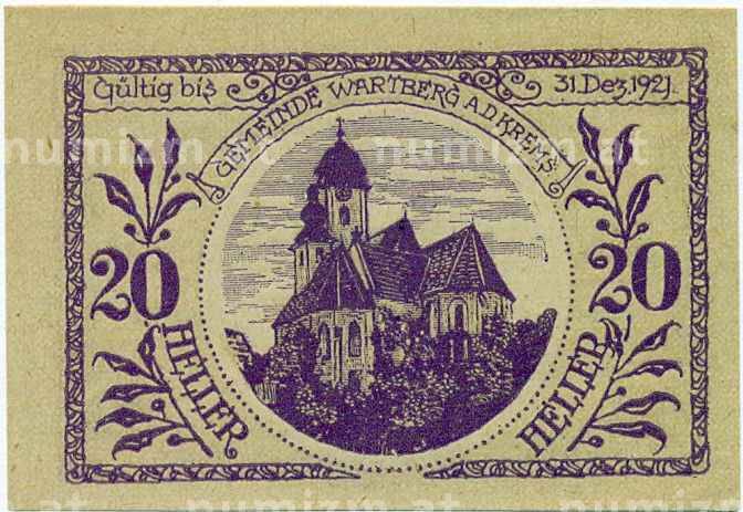 Купить 20 геллеров 1920 года Австрия — Коммуна Вартберг-ан-дер-Кремс (Нотгельд) по привлекательной цене можно в нашем интернет-магазине — Вам достаточно оформить заказ на сайте. Все монеты, представленные в каталоге, находятся в наличии на нашем складе.