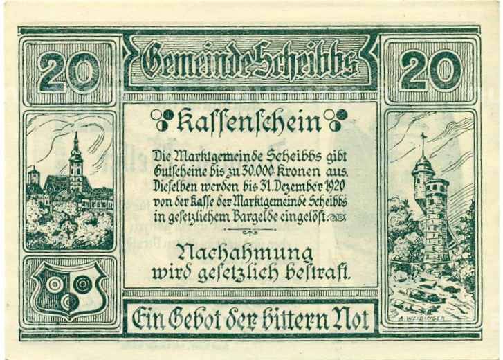 Купить 20 геллеров 1920 года Австрия — Шайбс (Нотгельд) по привлекательной цене можно в нашем интернет-магазине — Вам достаточно оформить заказ на сайте. Все монеты, представленные в каталоге, находятся в наличии на нашем складе.