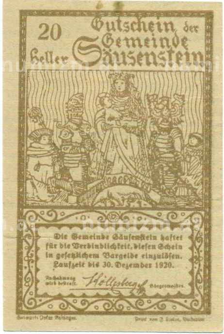 Купить 20 геллеров 1920 года Австрия — Заусенштайн (Нотгельд) по привлекательной цене можно в нашем интернет-магазине — Вам достаточно оформить заказ на сайте. Все монеты, представленные в каталоге, находятся в наличии на нашем складе.