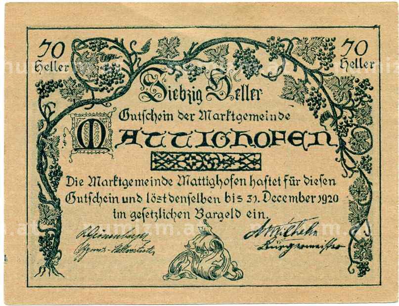 Купить 50 геллеров 1920 года Австрия — Маттигхофен (Нотгельд) по привлекательной цене можно в нашем интернет-магазине — Вам достаточно оформить заказ на сайте. Все монеты, представленные в каталоге, находятся в наличии на нашем складе.