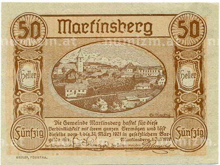 Купить 50 геллеров 1920 года Австрия — Мартинсберг (Нотгельд) по привлекательной цене можно в нашем интернет-магазине — Вам достаточно оформить заказ на сайте. Все монеты, представленные в каталоге, находятся в наличии на нашем складе.