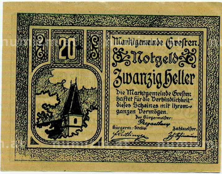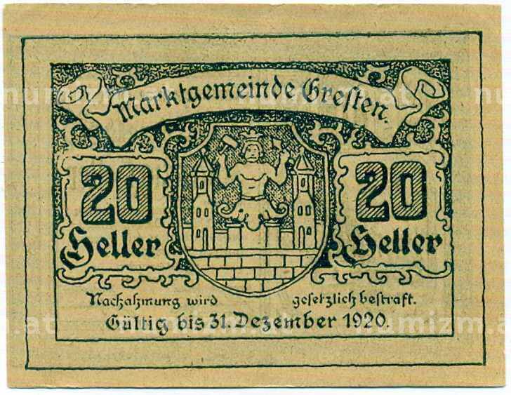 Купить 20 геллеров 1920 года Австрия — Коммуна Грестен (Нотгельд) по привлекательной цене можно в нашем интернет-магазине — Вам достаточно оформить заказ на сайте. Все монеты, представленные в каталоге, находятся в наличии на нашем складе.