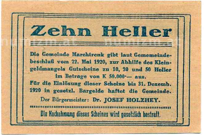 Купить 10 геллеров 1920 года Австрия — Мархтренк (Нотгельд) по привлекательной цене можно в нашем интернет-магазине — Вам достаточно оформить заказ на сайте. Все монеты, представленные в каталоге, находятся в наличии на нашем складе.