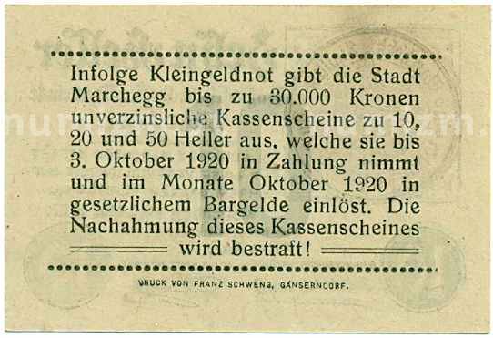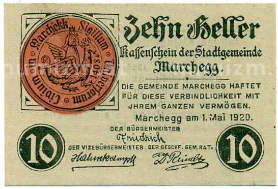 Купить 10 геллеров 1920 года Австрия — Мархег (Нотгельд) по привлекательной цене можно в нашем интернет-магазине — Вам достаточно оформить заказ на сайте. Все монеты, представленные в каталоге, находятся в наличии на нашем складе.
