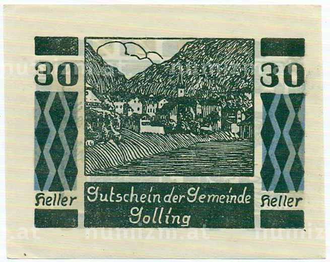 Купить 30 геллеров 1920 года Австрия — Голлинг (Нотгельд) по привлекательной цене можно в нашем интернет-магазине — Вам достаточно оформить заказ на сайте. Все монеты, представленные в каталоге, находятся в наличии на нашем складе.