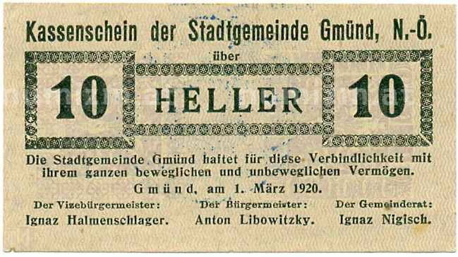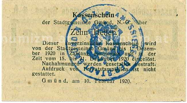 Купить 10 геллеров 1920 года Австрия — Гмюнд (Нотгельд) по привлекательной цене можно в нашем интернет-магазине — Вам достаточно оформить заказ на сайте. Все монеты, представленные в каталоге, находятся в наличии на нашем складе.