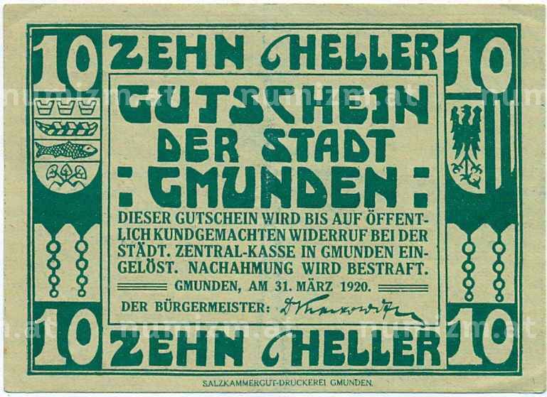 Купить 10 геллеров 1920 года Австрия — Гмунден (Нотгельд) по привлекательной цене можно в нашем интернет-магазине — Вам достаточно оформить заказ на сайте. Все монеты, представленные в каталоге, находятся в наличии на нашем складе.