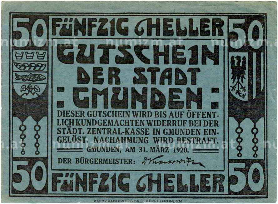 Купить 50 геллеров 1920 года Австрия — Гмунден (Нотгельд) по привлекательной цене можно в нашем интернет-магазине — Вам достаточно оформить заказ на сайте. Все монеты, представленные в каталоге, находятся в наличии на нашем складе.
