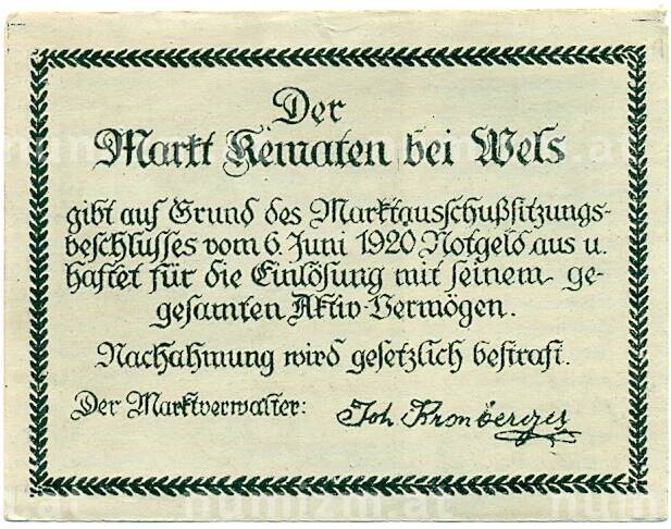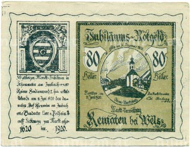 Купить 80 геллеров 1920 года Австрия — Кематен-на-Кремсе (Нотгельд) по привлекательной цене можно в нашем интернет-магазине — Вам достаточно оформить заказ на сайте. Все монеты, представленные в каталоге, находятся в наличии на нашем складе.