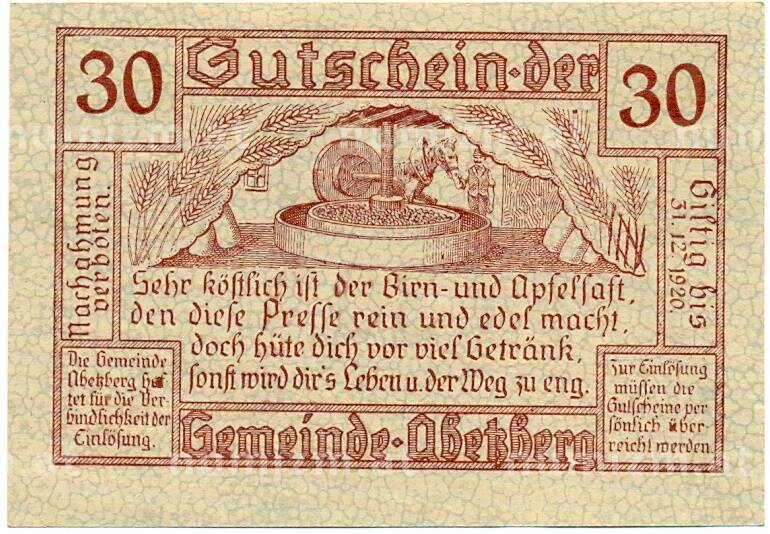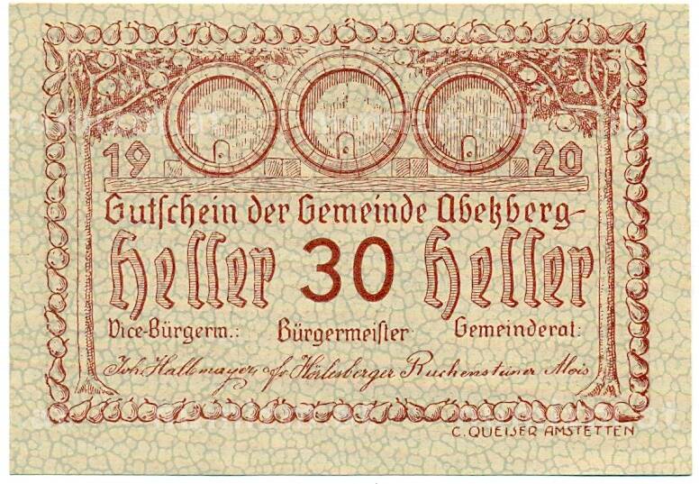 Купить 30 геллеров 1920 года Австрия — Абецберг (Нотгельд) по привлекательной цене можно в нашем интернет-магазине — Вам достаточно оформить заказ на сайте. Все монеты, представленные в каталоге, находятся в наличии на нашем складе.