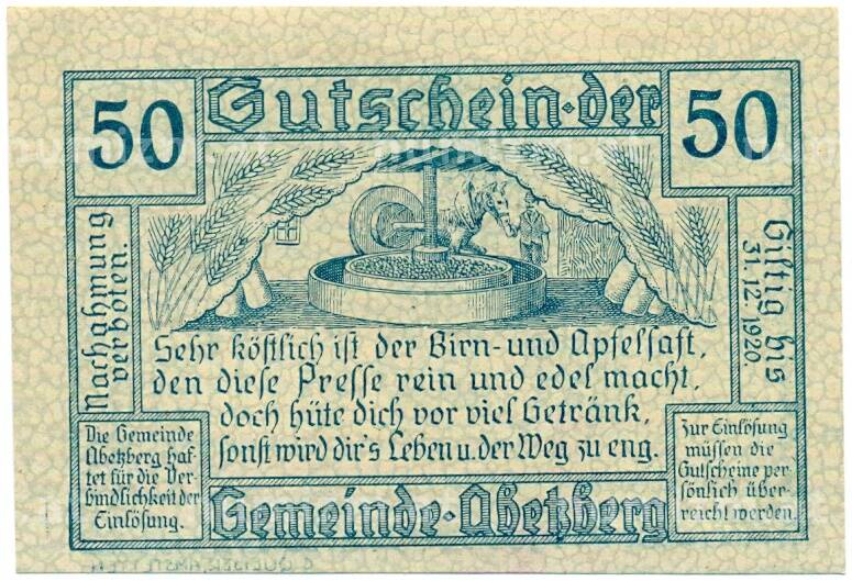 Купить 50 геллеров 1920 года Австрия — Абецберг (Нотгельд) по привлекательной цене можно в нашем интернет-магазине — Вам достаточно оформить заказ на сайте. Все монеты, представленные в каталоге, находятся в наличии на нашем складе.