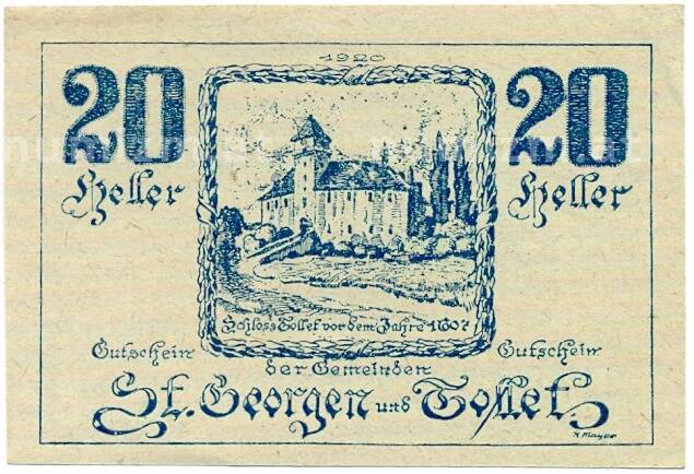 Купить 20 геллеров 1920 года Австрия — Община Санкт-Георген-ам-Толлет (Нотгельд) по привлекательной цене можно в нашем интернет-магазине — Вам достаточно оформить заказ на сайте. Все монеты, представленные в каталоге, находятся в наличии на нашем складе.