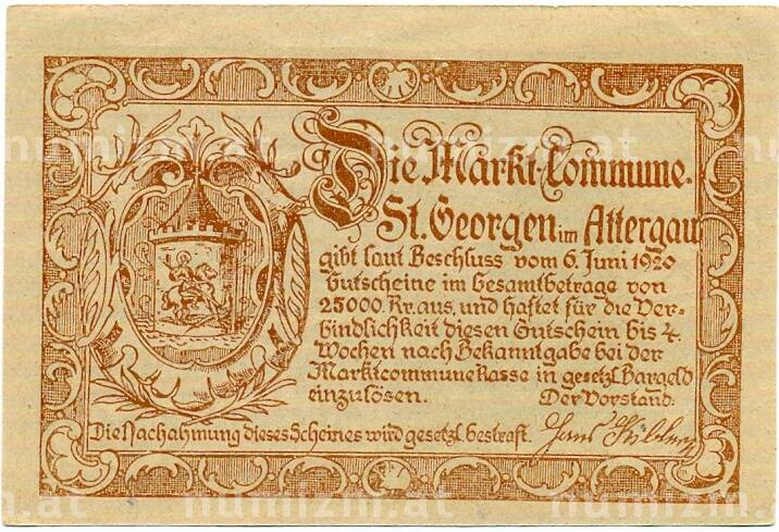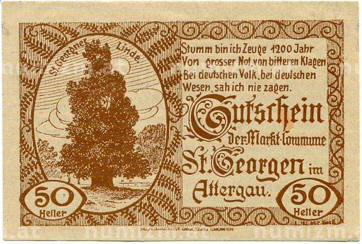 Купить 50 геллеров 1920 года Австрия — Санкт-Георген (Нотгельд) по привлекательной цене можно в нашем интернет-магазине — Вам достаточно оформить заказ на сайте. Все монеты, представленные в каталоге, находятся в наличии на нашем складе.
