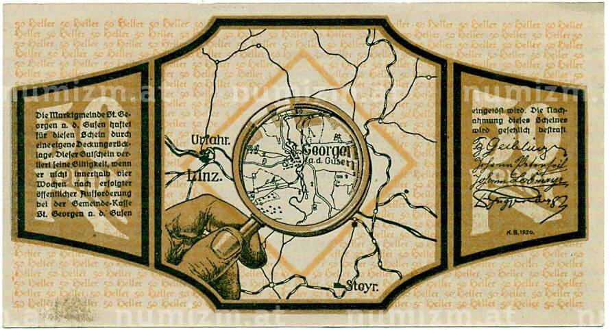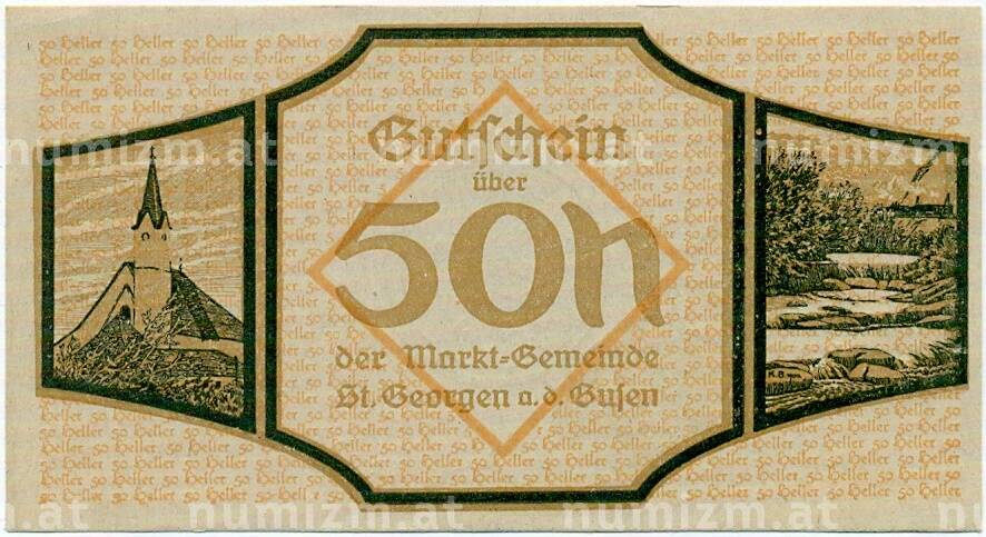 Купить 50 геллеров 1920 года Австрия — Санкт-Георген-ан-дер-Гузен (Нотгельд) по привлекательной цене можно в нашем интернет-магазине — Вам достаточно оформить заказ на сайте. Все монеты, представленные в каталоге, находятся в наличии на нашем складе.