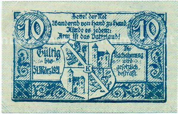 Купить 10 геллеров 1920 года Австрия — Кирхдорф-на-Кремсе (Нотгельд) по привлекательной цене можно в нашем интернет-магазине — Вам достаточно оформить заказ на сайте. Все монеты, представленные в каталоге, находятся в наличии на нашем складе.