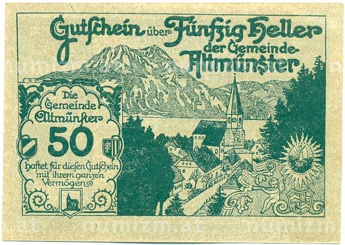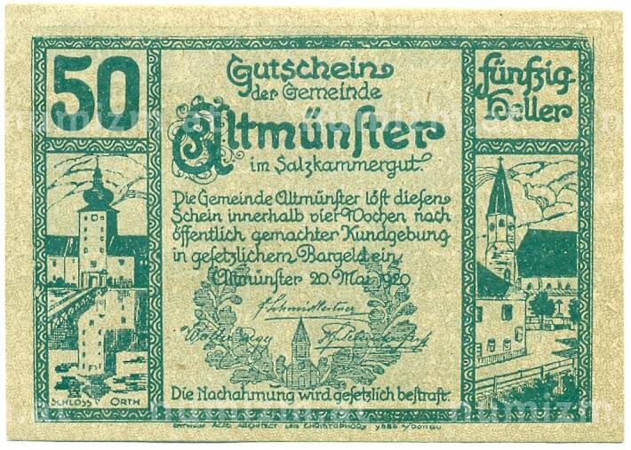 Купить 50 геллеров 1920 года Австрия — Альтмюнстер (Нотгельд) по привлекательной цене можно в нашем интернет-магазине — Вам достаточно оформить заказ на сайте. Все монеты, представленные в каталоге, находятся в наличии на нашем складе.