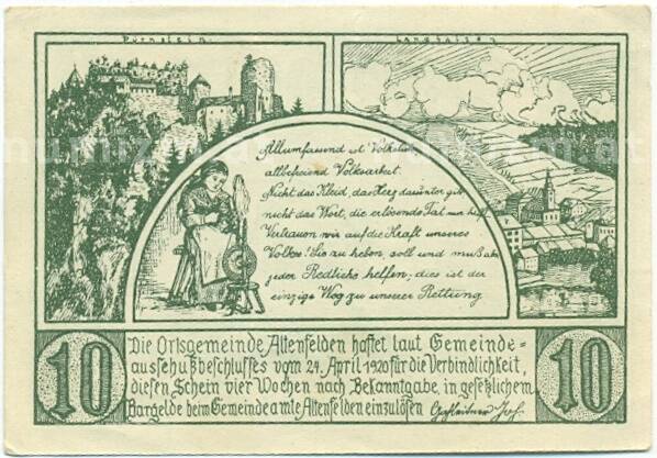 Купить 10 геллеров 1920 года Австрия — Коммуна Альтенфельден (Нотгельд) по привлекательной цене можно в нашем интернет-магазине — Вам достаточно оформить заказ на сайте. Все монеты, представленные в каталоге, находятся в наличии на нашем складе.
