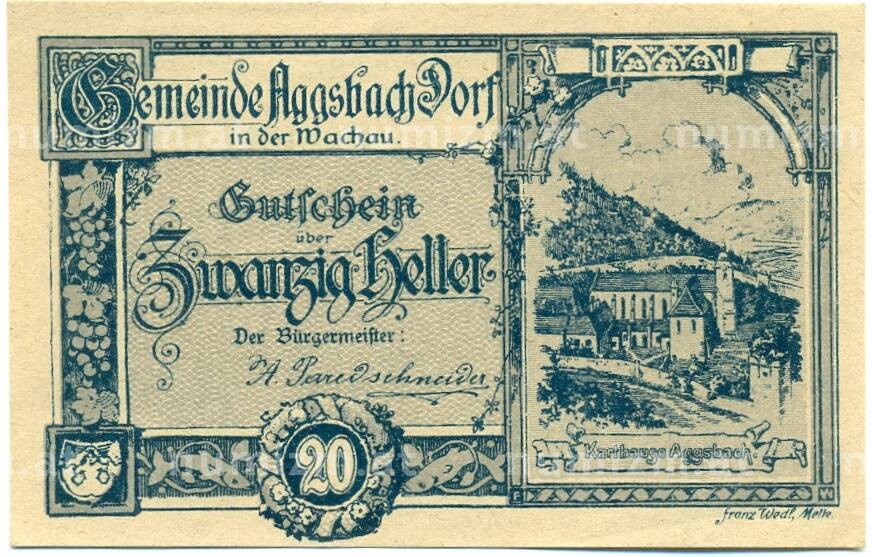 20.01.2025Интернет магазин «Нумизмат» предлагает приобрести 20 геллеров 1920 года Австрия — Коммуна Агсбах-Дорф (Нотгельд).