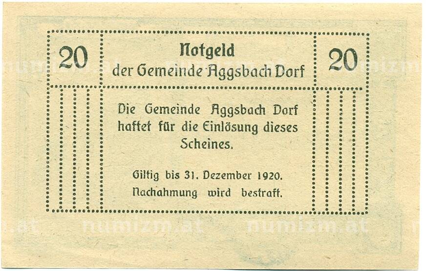 Купить 20 геллеров 1920 года Австрия — Коммуна Агсбах-Дорф (Нотгельд) по привлекательной цене можно в нашем интернет-магазине — Вам достаточно оформить заказ на сайте. Все монеты, представленные в каталоге, находятся в наличии на нашем складе.