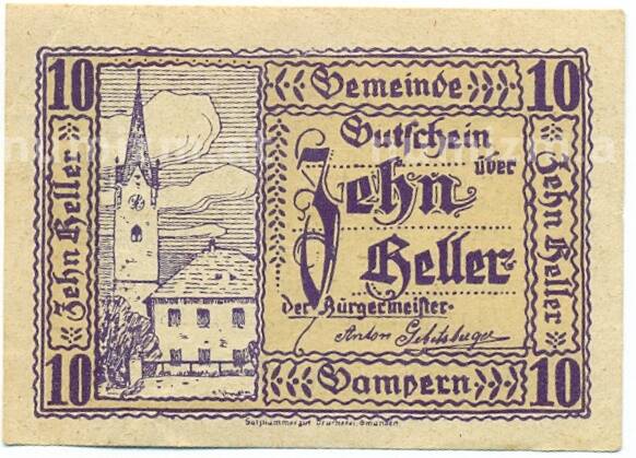 Купить 10 геллеров 1920 года Австрия — Гамперн (Нотгельд) по привлекательной цене можно в нашем интернет-магазине — Вам достаточно оформить заказ на сайте. Все монеты, представленные в каталоге, находятся в наличии на нашем складе.