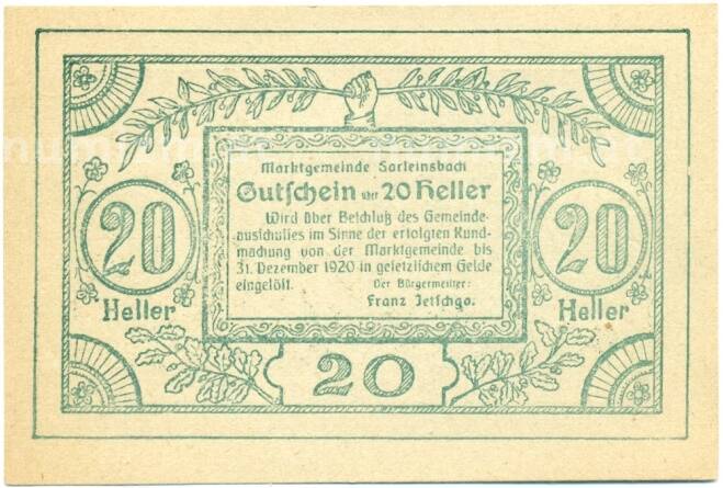 20.01.2025Интернет магазин «Нумизмат» предлагает приобрести 20 геллеров 1920 года Австрия — Коммуна Зарлайнсбах (Нотгельд).