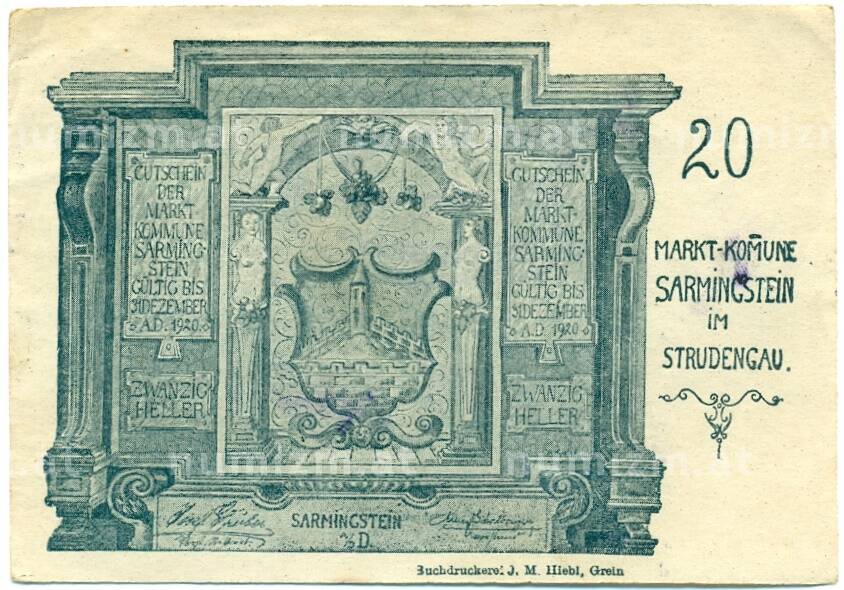 Купить 20 геллеров 1920 года Австрия — Зармингштайн (Нотгельд) по привлекательной цене можно в нашем интернет-магазине — Вам достаточно оформить заказ на сайте. Все монеты, представленные в каталоге, находятся в наличии на нашем складе.