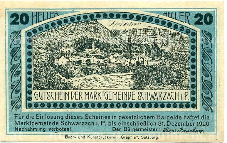 Купить 20 геллеров 1920 года Австрия — Коммуна Шварцах (Нотгельд) по привлекательной цене можно в нашем интернет-магазине — Вам достаточно оформить заказ на сайте. Все монеты, представленные в каталоге, находятся в наличии на нашем складе.