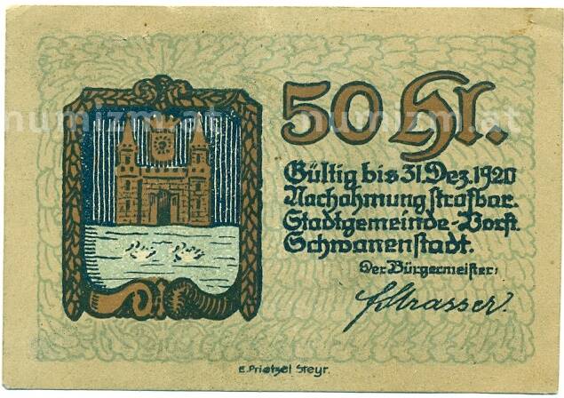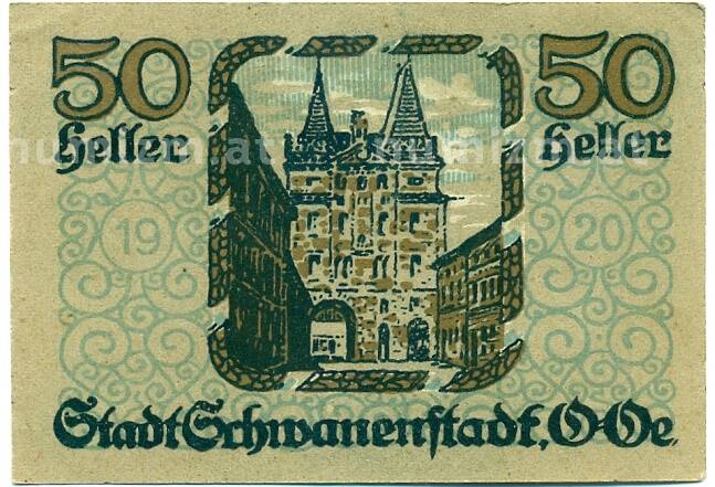 Банкнота 50 геллеров 1920 года Австрия — Шваненштадт (Нотгельд) (Артикул: B2-15468): подробные характеристики, качественные фотографии в высоком разрешении, низкая цена.