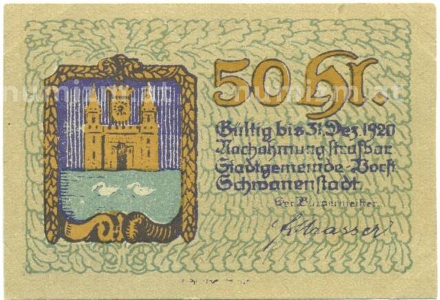 Купить 50 геллеров 1920 года Австрия — Шваненштадт (Нотгельд) по привлекательной цене можно в нашем интернет-магазине — Вам достаточно оформить заказ на сайте. Все монеты, представленные в каталоге, находятся в наличии на нашем складе.