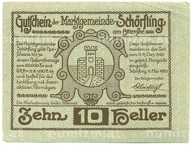Купить 10 геллеров 1920 года Австрия — Шерфлинг-ам-Аттерзе (Нотгельд) по привлекательной цене можно в нашем интернет-магазине — Вам достаточно оформить заказ на сайте. Все монеты, представленные в каталоге, находятся в наличии на нашем складе.