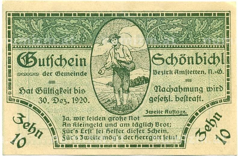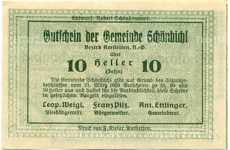 Банкнота 10 геллеров 1920 года Австрия — Цитбальче (Нотгельд) (Артикул: B2-15478): подробные характеристики, качественные фотографии в высоком разрешении, низкая цена.