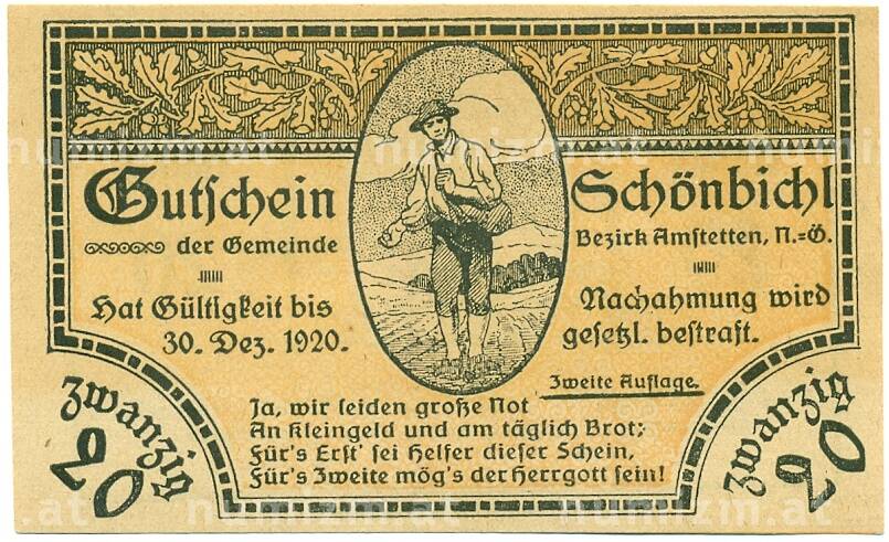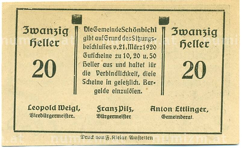 Банкнота 20 геллеров 1920 года Австрия — Цитбальче (Нотгельд) (Артикул: B2-15479): подробные характеристики, качественные фотографии в высоком разрешении, низкая цена.