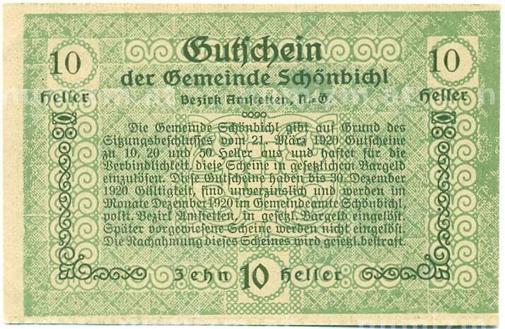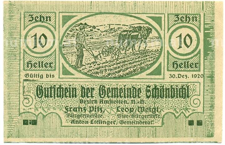 Банкнота 10 геллеров 1920 года Австрия — Цитбальче (Нотгельд) (Артикул: B2-15485): подробные характеристики, качественные фотографии в высоком разрешении, низкая цена.