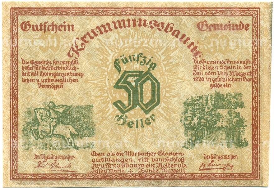 Купить 50 геллеров 1920 года Австрия — Крумнусбаум (Нотгельд) по привлекательной цене можно в нашем интернет-магазине — Вам достаточно оформить заказ на сайте. Все монеты, представленные в каталоге, находятся в наличии на нашем складе.