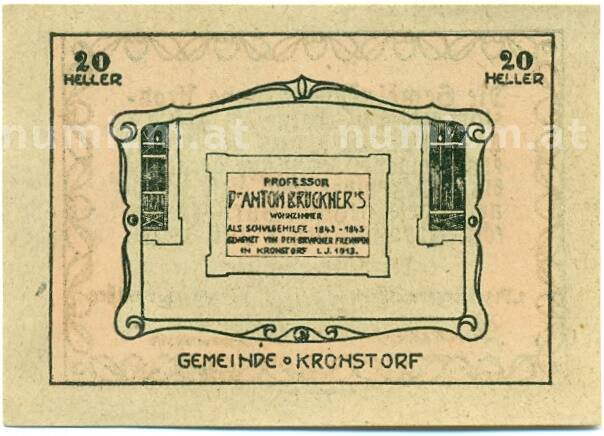 Купить 20 геллеров 1920 года Австрия — Коммуна Кронсторф (Нотгельд) по привлекательной цене можно в нашем интернет-магазине — Вам достаточно оформить заказ на сайте. Все монеты, представленные в каталоге, находятся в наличии на нашем складе.