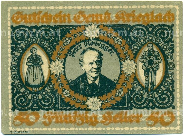 Купить 50 геллеров 1920 года Австрия — Криглах (Нотгельд) по привлекательной цене можно в нашем интернет-магазине — Вам достаточно оформить заказ на сайте. Все монеты, представленные в каталоге, находятся в наличии на нашем складе.