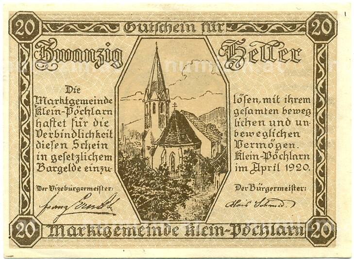 Купить 20 геллеров 1920 года Австрия — Клайн-Пехларн (Нотгельд) по привлекательной цене можно в нашем интернет-магазине — Вам достаточно оформить заказ на сайте. Все монеты, представленные в каталоге, находятся в наличии на нашем складе.