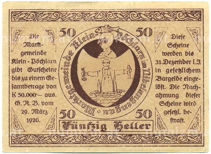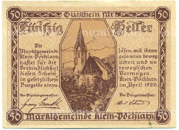 Купить 50 геллеров 1920 года Австрия — Клайн-Пехларн (Нотгельд) по привлекательной цене можно в нашем интернет-магазине — Вам достаточно оформить заказ на сайте. Все монеты, представленные в каталоге, находятся в наличии на нашем складе.