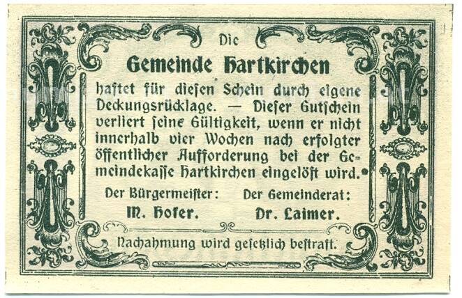 Купить 75 геллеров 1920 года Австрия — Харткирхен (Нотгельд) по привлекательной цене можно в нашем интернет-магазине — Вам достаточно оформить заказ на сайте. Все монеты, представленные в каталоге, находятся в наличии на нашем складе.