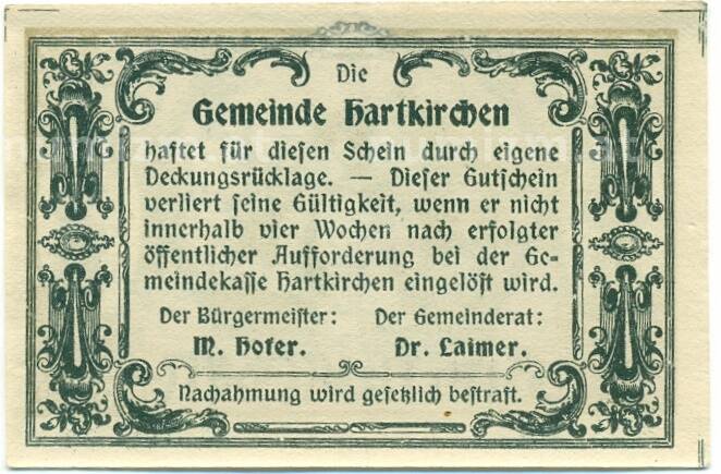 Купить 75 геллеров 1920 года Австрия — Харткирхен (Нотгельд) по привлекательной цене можно в нашем интернет-магазине — Вам достаточно оформить заказ на сайте. Все монеты, представленные в каталоге, находятся в наличии на нашем складе.