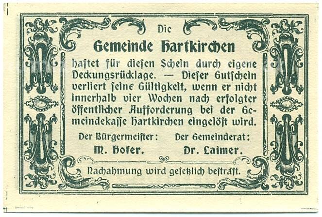 Купить 50 геллеров 1920 года Австрия — Харткирхен (Нотгельд) по привлекательной цене можно в нашем интернет-магазине — Вам достаточно оформить заказ на сайте. Все монеты, представленные в каталоге, находятся в наличии на нашем складе.