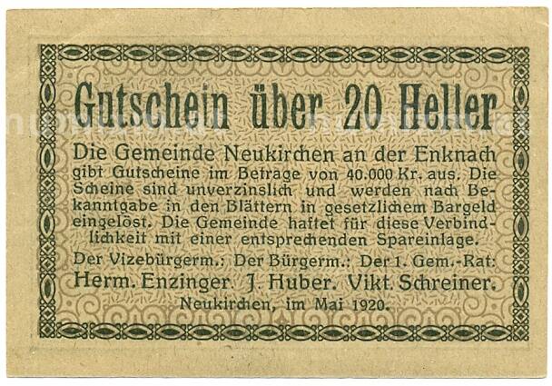 Купить 20 геллеров 1920 года Австрия — Нойкирхен-ан-дер-Энкнах (Нотгельд) по привлекательной цене можно в нашем интернет-магазине — Вам достаточно оформить заказ на сайте. Все монеты, представленные в каталоге, находятся в наличии на нашем складе.