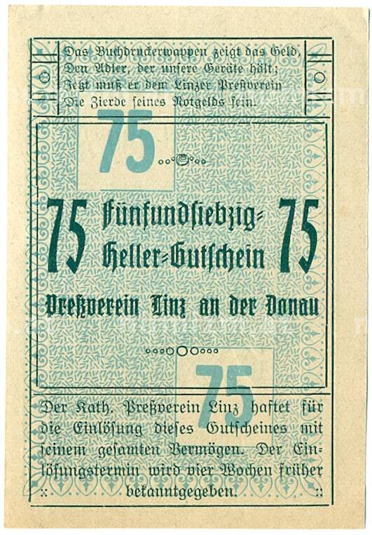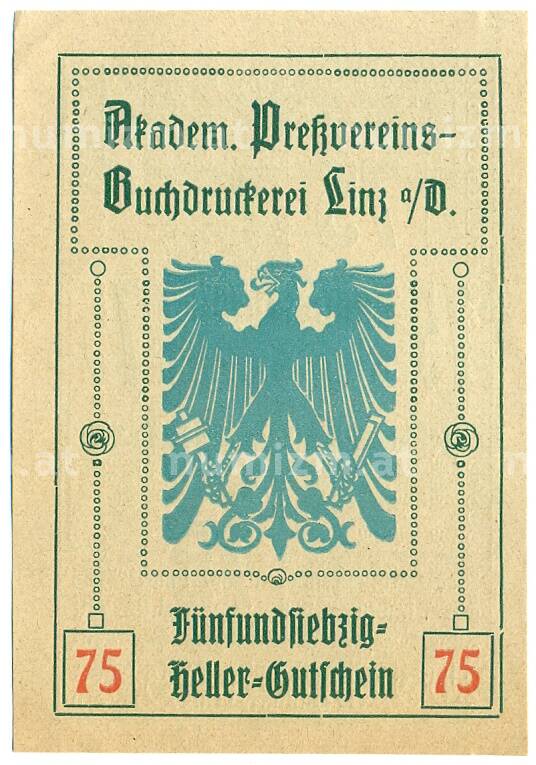 Купить 75 геллеров 1920 года Австрия — Линц-на-Дунае (Нотгельд) по привлекательной цене можно в нашем интернет-магазине — Вам достаточно оформить заказ на сайте. Все монеты, представленные в каталоге, находятся в наличии на нашем складе.