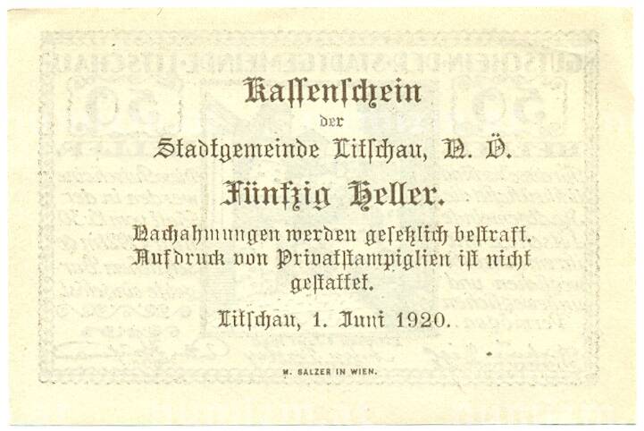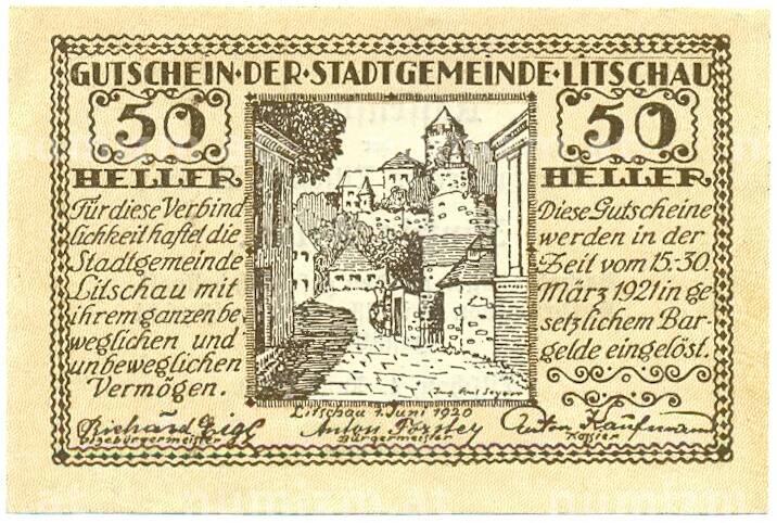 Купить 50 геллеров 1920 года Австрия — Личау (Нотгельд) по привлекательной цене можно в нашем интернет-магазине — Вам достаточно оформить заказ на сайте. Все монеты, представленные в каталоге, находятся в наличии на нашем складе.