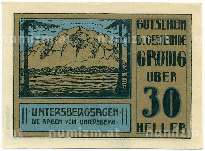 Банкнота 30 геллеров 1920 года Австрия — Гредиг (Нотгельд) (Артикул: B2-16023): подробные характеристики, качественные фотографии в высоком разрешении, низкая цена.