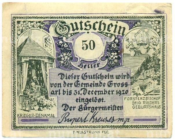 Купить 50 геллеров 1920 года Австрия — Гроссарль (Нотгельд) по привлекательной цене можно в нашем интернет-магазине — Вам достаточно оформить заказ на сайте. Все монеты, представленные в каталоге, находятся в наличии на нашем складе.