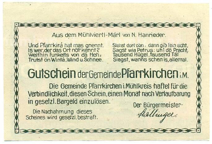 Купить 10 геллеров 1920 года Австрия — Пфарркирхене-на-Мондзее (Нотгельд) по привлекательной цене можно в нашем интернет-магазине — Вам достаточно оформить заказ на сайте. Все монеты, представленные в каталоге, находятся в наличии на нашем складе.