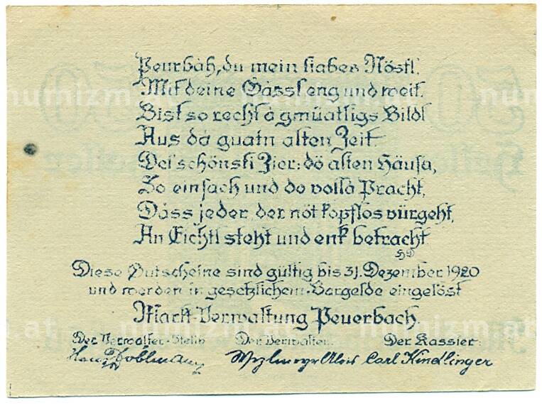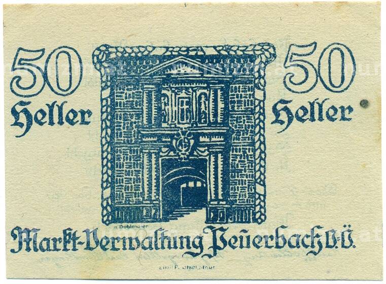 Купить 50 геллеров 1920 года Австрия — Пойербах (Нотгельд) по привлекательной цене можно в нашем интернет-магазине — Вам достаточно оформить заказ на сайте. Все монеты, представленные в каталоге, находятся в наличии на нашем складе.